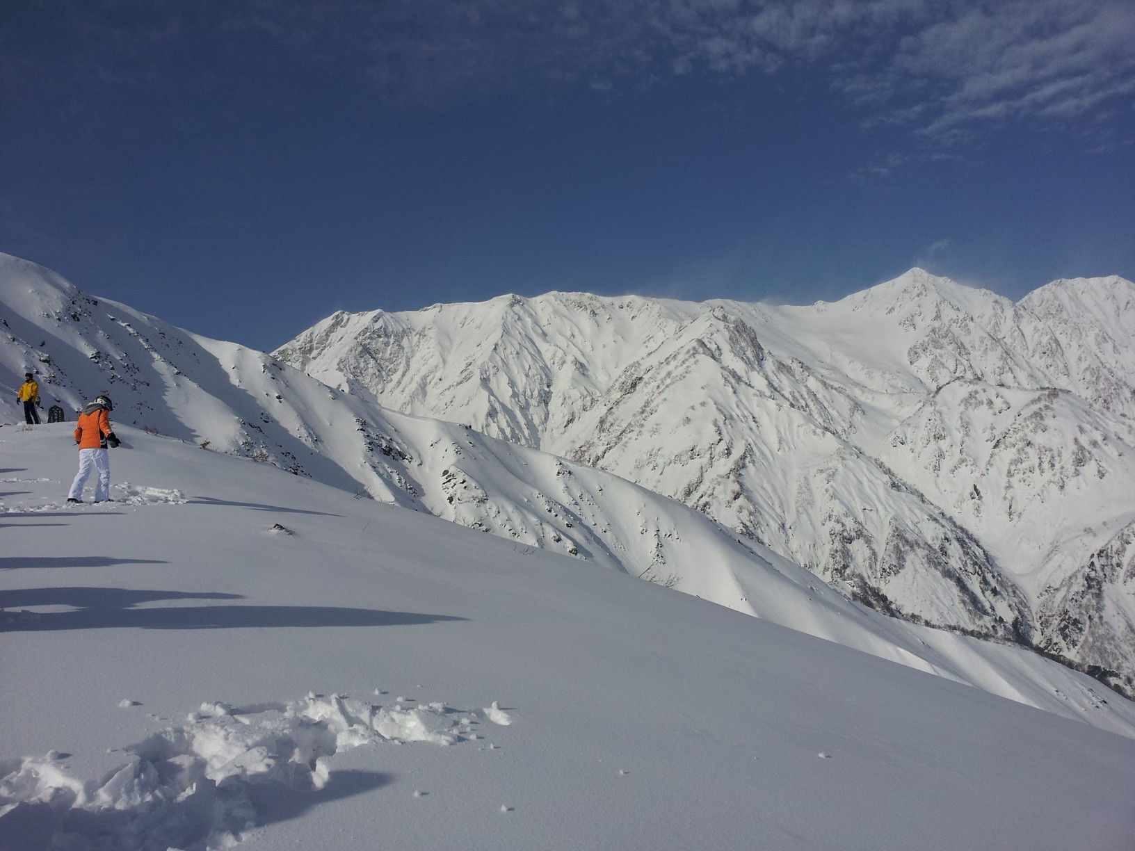 한겨울에 이렇게 파란 하늘 아래 북알프스의 화려한 모습을 볼 수 있는 것도 행운인지라 정상에 도착해서는 모두들 사진에 담기 바쁩니다.
