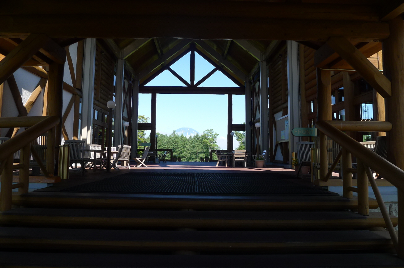 우드/리버코스 클럽하우스에 들어서면 정면으로 아름다운 요테이산이 살며시 모습을 드러냅니다.