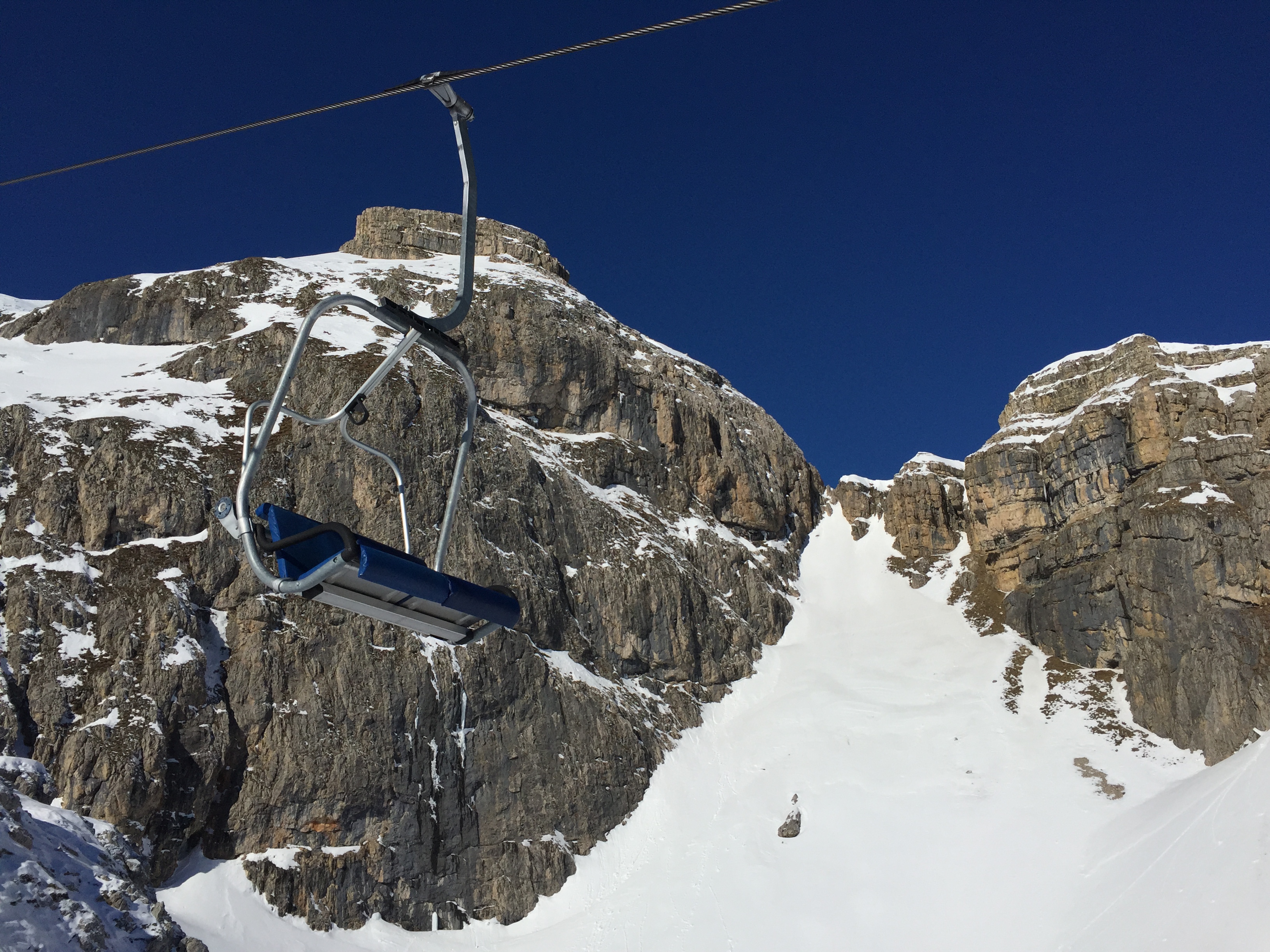 돌로미티는 암반이 바다에서 한꺼번에 떼를 지어 솟아오른 특수지형이다. 암석에 마그네슘, 칼슘, 철 등이 함유되어 있어 특히 일출 및 일몰 시 암석이 붉은색을 띄게 되는데, 이 모습이 돌로미티의 매력이기도 하다. 침식활동이 심하므로 변화도 다양다채(多洋多彩)하다. 최고봉은 마르몰라다(Marmolada)로 3,343m이다. 정상을 올라서면 직선의 첨봉(尖峰)이 주는 위압감은 거역할 수 없이 순응하는 유럽 민족의 원형(原形)을 만들었다는 생각이 든다. 케이블카 뒤로 보이는 붉은 바위산 암벽이 영화 "클리프 헹어"의 주요 촬영지라고 한다.