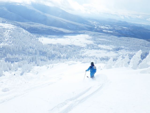 일본 유일의 산악스키장. 아오모리현 핫코다산은 일본 최고의 강설지구로 스키장 건설로는 천혜의 자연조건을 갖춘 곳임에도 불구하고 국가의 핫코다산 자연보호정책으로 스키장 건설이 철저히 제한되고 있어 유일하게 핫코다산스키장 한 곳이 게렌디를 갖추고 있다. 그러나 그루밍 된 슬로프는 5면 밖에 되지 않으며, 백컨트리의 산악스키를 즐기려고 일본 전국에서 매니어들이 찾아오는 곳이다. 거대한 수빙(스노우 몬스타)숲 사이로 100% 퓨어 파우더의 천연설을 가르며 활강하는 즐거움은 상상을 초월하는 신선한 충격으로 다가올 것이다.